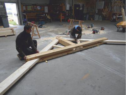 Les pièces de bois sont usinées en tenons mortaises avec chevillages dans le respect de la charpente traditionnelle.